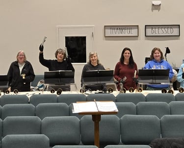 Practices are geared towards learning a suite of pieces for 4,6 or 6+ ringers which prepares ringers for events as they occur such as entertainment for work events, Mother's Day banquets, funeral music Senior Living visitations, Christmas Tree Lighting, etc.