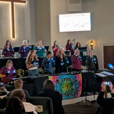 The adult handbell choir is comprised of a mixture of adult and advanced youth ringers.