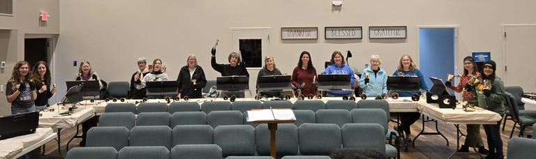 Practices are held weekly with performances in May and December. (Come check out Annual May Concert to be held on May 16,2026 at 3 pm CT) Youth ringers learn bell ringing techniques and learn how to read music. They also have the opportunity to ring in some of the Specialty Group Programs such as Senior Living facility rings, Christmas Tree Lighting, etc.